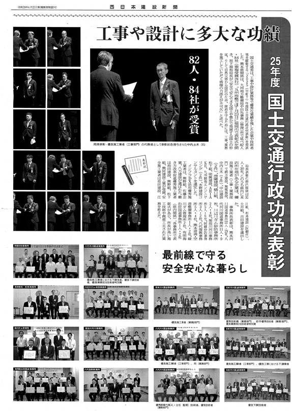 7月に表彰をいただきました、国土交通省九州地方整備局 若手技術者(工事部門)